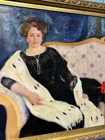 Горностаєвий палантин дуже вдало доповнює образ поважної пані, і саме зображення виглядає відповідно статусним.